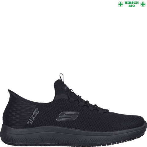 Skechers work edzőcipő rugalmas záródással és kivehető memóriahabos talpbetéttel. A talp ideális a vendéglátóiparban, mivel csúszásmentes és antisztatikus, de magánhasználatra is ideális. Ez a slip-on a Skechers új slip-in rendszerével rendelkezik, ami az