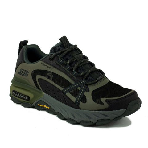 A sportos kényelem és a tartós tapadás találkozása - ez a Skechers Max Protect - Task Force. Ez a fűzős kültéri túracipő modell 3M® Scotchgard® anyaggal kezelt vízlepergető bőr és hálós felsővel, Skechers Air-Cooled Memory Foam®
