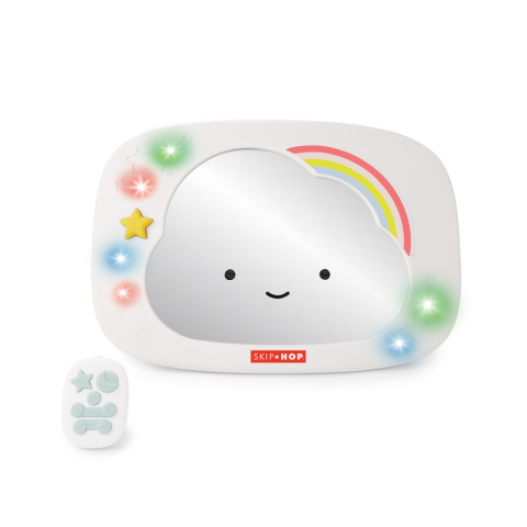 Szórakoztassa, nyugtassa meg és figyelje a babát ezzel a cuki hátsó ülésre szerelhető gyermektükörrel. Az édes felhő design zenével, fehér zaj hangokkal és színes fényekkel is rendelkezik, valamint távirányítóval is ellátott, így könnyen beállítható a gyermek igényei szerint kényelmesen és biztonságosan.