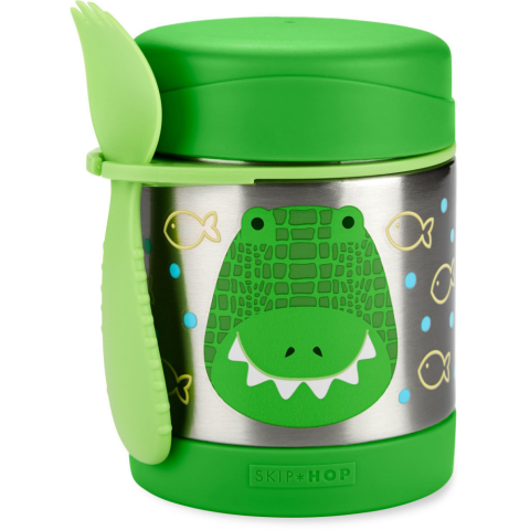 Ez a színes rozsdamentes acél tartály melegen vagy hidegen tartja a gyerek-méretű adagokat. Tárolja a kis méretű villát, ami egyben kanálként is használható. Az evőeszköz praktikusan felakasztható a termoszra, így menet közben is készen áll az étkezésre.