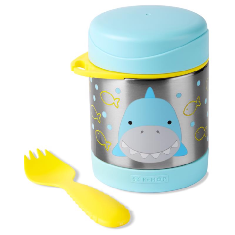 1 kép Skip hop Zoo rozsdamentes acél ételtároló termosz evőeszközzel 325ml Cápa