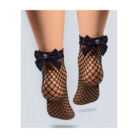 Divatos fekete nagyszemű necc bokafix hátul masnival és csillogó kővel A bokafix főbb jellemzői Megnevezés: divatos bokafix Mennyiség: 1 pár Kialakítás: kényelmes bokagumírozás és orrerősítés Szín: fekete Minta: necc (nagyszemű) Fazon: bokazokni Díszítés: egy masni és egy kb. 7 mm-es csillogó kő (a bokagumírozáson, hátul) Méret: normál méret (one size; kb. 35-40) Anyagösszetétel: 85% poliamid, 15% elasztán (rugalmas, nyúlékony anyag) Keze