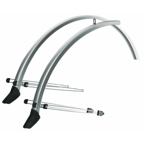 Könnyű, tartós műanyag sárvédő szettek 3 mm-es rozsdamentes acél pálcákkal.Secu-Clip az első pálcákon, amely egy ügyes megoldás a biztonságodért: a kerék által felkapott idegen tárgyak a gumi és a sárvédő közé szorulva blokkolhatják az első kereket. A Secu-Clip ilyenkor kiold, majd gond nélkül visszacsatolható.Spoilerrel szerelt kivitel.{Szélesség:45 mmSzín:ezüstKiszerelés:szettRögzítés:pálcásSárvédő anyaga:alu/plasticFelhasználási terület:VárosiKe