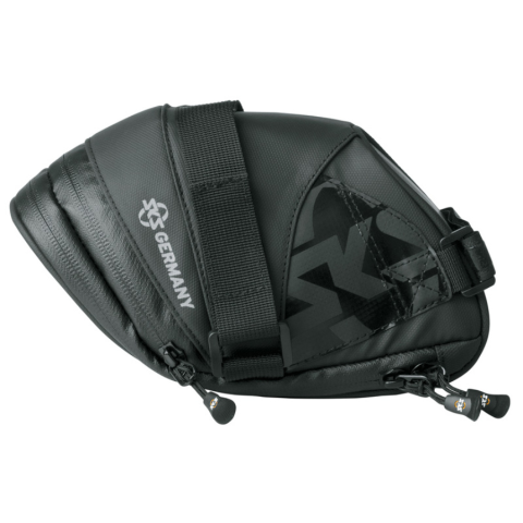 Erős és tartós! Gumírozott, vízlepergető anyaga teszi az Explorer táskát kötelező kellékké minden mountainbike-os számára. Fényvisszaverővel ellátott részei, mint az SKS logó, hozzájárulnak a biztonsághoz. Rengeteg helyet biztosít a szerszámok, csere belsők és a személyes tárgyak számára, ezenkívül laminált, ergonómikus easy-zip-pel ellátott cipzárral és narancs színű béléssel rendelkezik, hogy megkönnyítse a keresést. 180 + 40 x 80 x 130 +10 mm{Kiszer