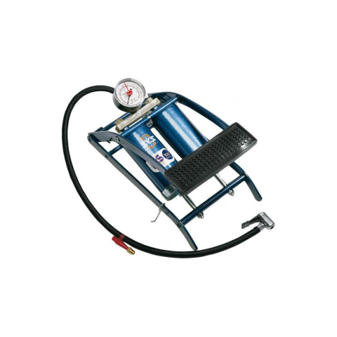 Ikerhengeres lábpumpa a hatékony és gyors pumpáláshoz. Használható matrac felfújáshoz is. Az egyik henger kiiktatható, és ekkor magasabb nyomást érhetünk el. Nyomásmérő órával ellátva, adapterekkel különböző szelepekhez.
