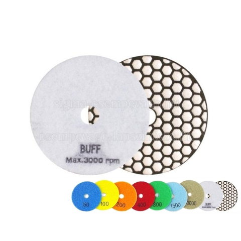SKT 425 gyémántszemcsés csiszoló és polírozó tárcsa #BUFF Alkalmas kerámia, gres, kőporcelán, kerlit, márvány, gránit, laminált üveg és egyéb burkolatok csiszolásához, polírozásához. Szárazon, alacsony fordulaton használható. A tárcsa tépőzáras tányérra s