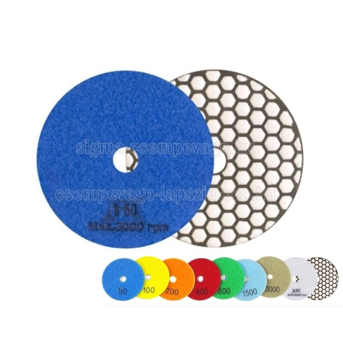 SKT 425 gyémántszemcsés csiszoló és polírozó tárcsa #50 Alkalmas kerámia, gres, kőporcelán, kerlit, márvány, gránit, laminált üveg és egyéb burkolatok csiszolásához, polírozásához. Szárazon, alacsony fordulaton használható. A tárcsa tépőzáras tányérra sze