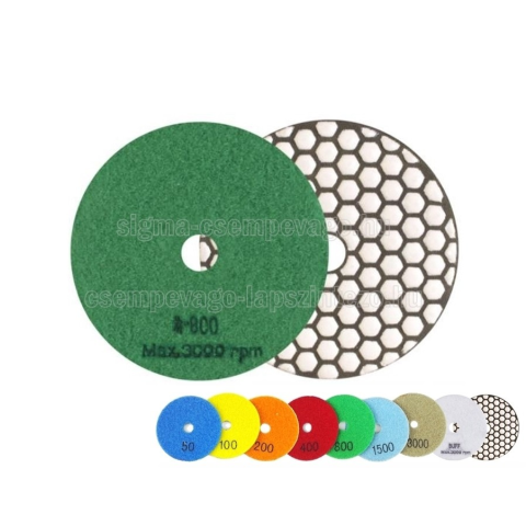SKT 415 gyémántszemcsés csiszoló és polírozó tárcsa #800 Alkalmas kerámia, gres, kőporcelán, kerlit, márvány, gránit, laminált üveg és egyéb burkolatok csiszolásához, polírozásához. Szárazon, alacsony fordulaton használható. A tárcsa tépőzáras tányérra sz