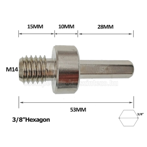 SKT adapter gyémánt lyukfúróhoz (skt21610) Használatával az M14 menettel rendelkező gyémántszerszámok alkalmasak lesznek fúrógéppel történő használathoz is. Az adaptert az M14 menettel rendelkező gyémántszerszámba kell csavarni a menetes résznél, így saro