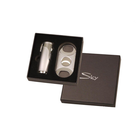 1 kép SKY Króm szinü Sky szivaröngyújtó és szivarvágó - szivaros szett