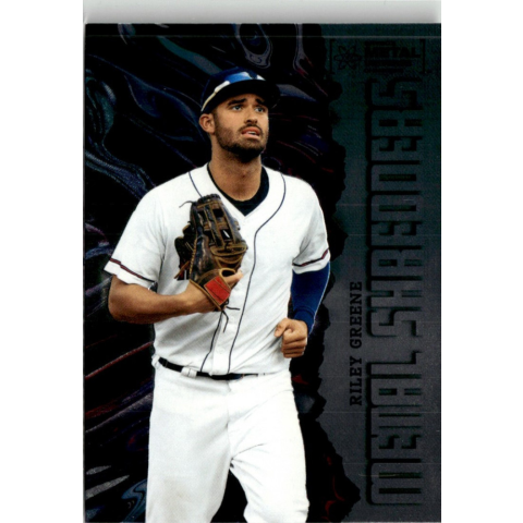 1 kép Skybox 2022-23 Skybox Metal Universe Champions Metal Shredders #104 Riley Greene
