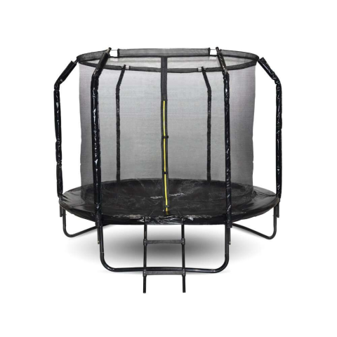 1 kép Skyflyer fekete, 244 cm-es kerti trambulin hálóval és profilozott oszlopokkal