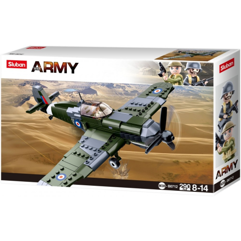 Sluban Army második világháborós Hurricane vadászgép építőjáték készlet, amely 290 darabból áll. Történeti háttér: A Sidney Camm által tervezett Hurricane volt a RAF első alsószárnyas, behúzható futóműves, együléses vadászgépe, amelyik képes volt 480 k