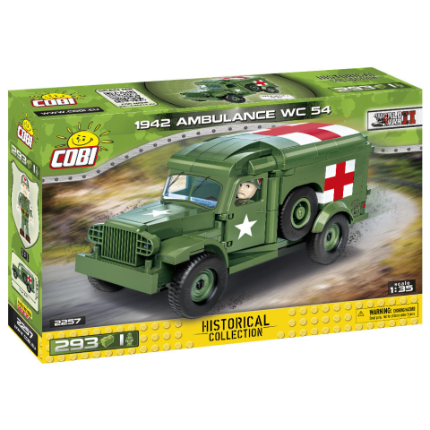 Részletesen kidolgozott, 1:35 méretarányú Cobi WC-54 katonai mentőautó építőjáték. A készlet 293 darabos és 1 figurát is tartalmaz. Az összeépített mentőautó 16 cm hosszú.