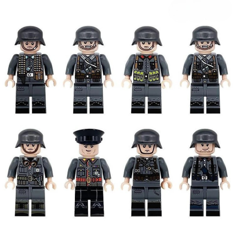 Egyedileg összeállított katonai építőjáték figura szett 8 db második világháborús német katonafigura. Katonai építőjáték figurák egy csomagban. Kiegészítők külön vásárolhatóak! Nézze meg a többi katonai figura szettünket is!