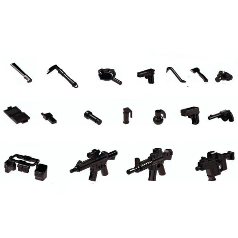 Sluban építőjáték katonai kiegészítő szett. A 18 darabos kis csomag különféle és változatos kellékeket tartalmaz, melyekkel még színesebbé tehető a játék. A játék apró alkatrészeket tartalmaz, 3 éves kor alatt nem ajánlott. A Sluban termékek kompatibilis