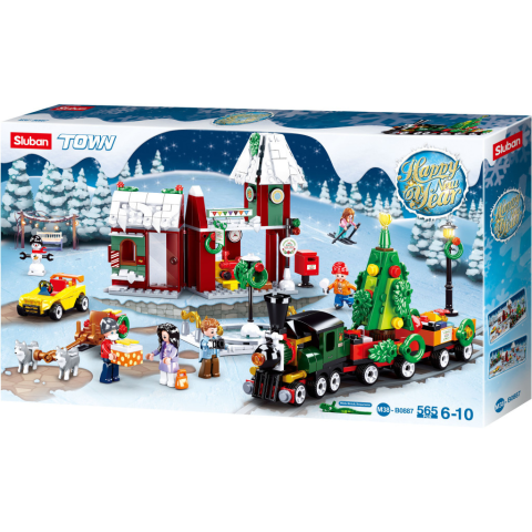 Sluban építőkészlet Town M38-B0887 Karácsonyi falu vonattal 565 db