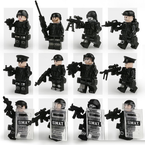 Egyedileg összeállított katonai építőjáték figura szett - SWAT speciális bevetési egység - 12 db építőjáték figura kiegészítőkkel. 12 db építőjáték figura egy csomagban, számos kiegészítővel. Nézze meg a többi katonai figura szettünket is!