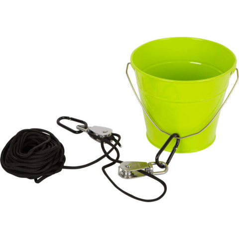 Small foot 11905 zöld fém vödör és hozzá 10 méter hosszú kötél csörlő szerkezettel. Csörlővel és 10 méter kötéllel ellátott hiánypótló kerti eszköz minden kisfiú számára ez a zöld fém vödör. A fém vödör csörl