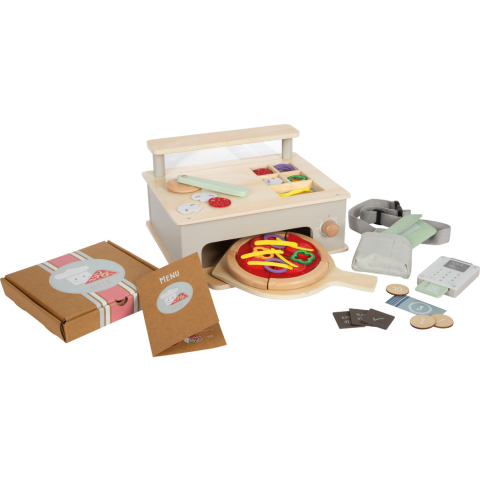 Süss és árulj pizzát, mint egy igazi profi! Ezzel a pizzakészítő szerepjátékos készlettel minden gyerekszoba pillanatok alatt pizzériává változik! A masszív fából készült pizzasütő sütő, tároló és eladópult egyben, praktikus rekeszekkel rendelkezik a pizza hozzávalói számára. A játékkészlet mindent tartalmaz, amire a kis szakácsoknak és étteremtulajdonosoknak szükségük van egy tipikus pizzériához - a pizzatálcától és a pizzavágótól kezdve a saját