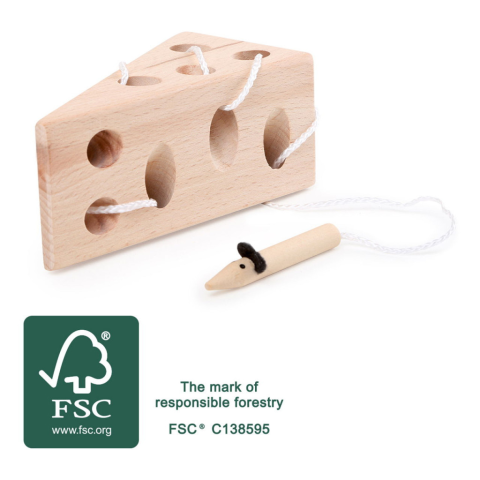 Small Foot fa készségfejlesztő fűzhető sajt egérrel