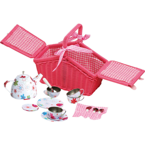 Small Foot játék Rózsaszín piknikkosár edényekkel