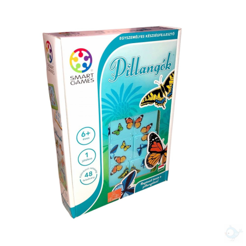 Fedezze fel modern és izgalmas játékainkat, vásárolja meg termékünket kényelmesen webáruházunkból! Smart Games, Pillangók Terjeszd ki a szárnyaid... és engedd szárnyalni a tudásod! Meg tudod alkotni a csodás pillangókat a véletlenszerű elemekből? A Pillan
