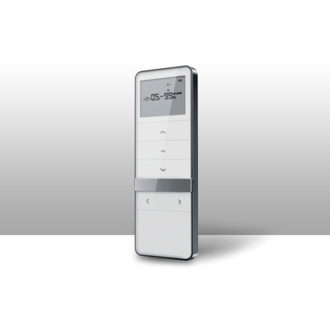 1 csatornás időprogramos kézi távirányító mágneses fali tartóval, fém burkolattal. Minden napra külön programozható a vezérlés. BIDI-s motor irányításához szükséges távirányító!