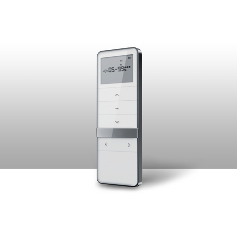 1 csatornás időprogramos kézi távirányító mágneses fali tartóval, fém burkolattal. Minden napra külön programozható a vezérlés.