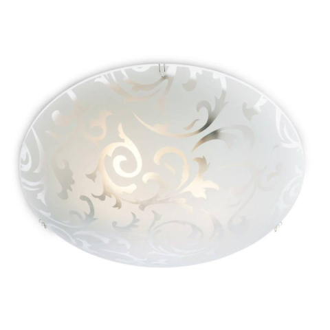 A Damasco 05-821 egy fémszerkezettel rendelkező, díszes üvegrésszel ellátott mennyezeti lámpa.* Méretei: 30 cm átmérőjű és 9 cm magas. Maximális teljesítménye 42 W. E27 típusú foglalatú égővel működik. Védettség: IP20. *A képek bemutatásra szolgálnak,