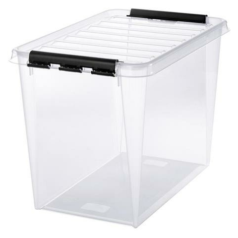 1 kép SMARTSTORE Műanyag tárolódoboz, 61 liter, fekete fogantyúkkal, SMARTSTORE "Classic 65", átlátszó