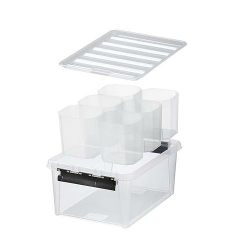 1 kép SMARTSTORE Műanyag tárolódoboz, fekete fogantyúkkal, 6 rekeszes, SMARTSTORE "Classic 15", átlátszó