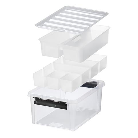SMARTSTORE Műanyag tárolódoboz, fekete fogantyúkkal, 7 rekeszes, SMARTSTORE Classic 15 , átlátszó bútor termékleírás