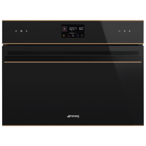SMEG KOMPAKT KOMBINÁLT MIKROHULLÁMÚ SÜTŐ, Dolce Stil Novo design, Galileo, 45 cm, ES LCD, fekete üveg, réz dísz