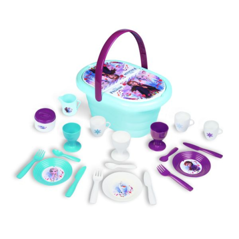 Ha jó az idő, irány piknikezni! A Smoby Jégvarázs piknikszettjében a gyerekek mindent megtalálnak ahhoz, ami egy vidám, szabadban töltött délutánhoz szükséges. Evőeszközöket, tányérokat, poharakat, kancsót, cukros tálat - sőt, még tojástartót is, hogy egy igazi, hercegnőhöz illő ebédet vagy épp uzsonnát fogyaszthassanak el. A zárható piknikkosárban minden tartozék kényelmesen elfér. A francia Smoby termékek 1924 óta varázsolják boldogabbá a gyerekek mind