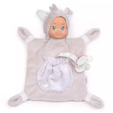 Hű társ szundizáshoz!A Smoby MiniKiss állatbaba szundikendője a legkisebbek kedvenc alvótársává válhat, akit jó átölelni egy-egy rossz álom után, és aki biztonságérzetet nyújt a kicsiknek. A harmonizáló színek, a nyuszi bundába bújt, mosolygós baba arc és a nedvszívó, pihe-puha anyag mind-mind hozzájárulnak a játékélményhez. A kendő elején egy zseb található, amiben kényelmesen elfér a csöppségek cumija.A képen látható cumi nem tartozék. Anyaga: műa