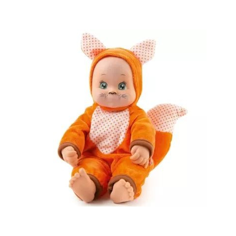 A MiniKiss puszit adó rókababa ölelésre tervezett, élénk narancssárga ruhában és puszihangot ad, ha megnyomják a pocakját. Arcát minőségi műanyag, testét puha textil alkotja. Fejleszti a szociális készségeket, empátiát, finommotorikát. A Smoby által készített, 27 cm magas baba csomagolási mérete 20 x 13 x 13 cm.