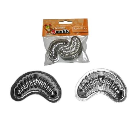 Forma - fém, 20 darabos készlet, kifli alakú, méret 55 × 20 mm A Smolík kifliformák praktikus kis formák, amelyeket kifli formájú sütemények sütésére vagy különböző desszertek elkészítésére terveztek. Fantáziádtól függően más édes és sós finomságok elkészítéséhez