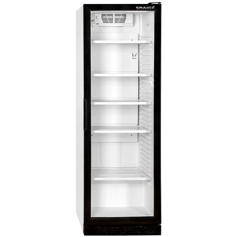 Hűtővitrin - E energiaosztály, C zajkibocsátási osztály, hűtő űrtartalma 373 l, polcok száma 5, jobb oldali zsanéros, méretek 181 × 59,5 × 60,5 cm (Ma×Sz×Mé), tömege 71 kg, fekete kivitel, LED világítás, szellőzés és 90°-os ajtónyitás Az üvegajtós hűtők egyszerűbb hozzáférést biztosítanak a termékekhez, megfelelő hűtési körülményeket kínálnak, és nagyszerűek bemutatásra is. A szabadon álló SNAIGE üvegajtós hűtő nagyszerűen megállja