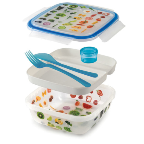Snips 033070 Ebédtároló doboz 'Trendy'Hordja ebédjét divatos és praktikus ebédtároló dobozban. A szett tartalma egy műanyag kés és villa, egy kivehetőtálca és egy szósz tároló.Űrtartalom: 1,5 literMéretek: 21 x 21 x 8 cmBPA mentesMosogatógépben mosható (max. 45 °C)Fagyasztóban tárolható (-18 °C fokig)Mikrohullámú sütőbe tehető (max. 3 perc, 400 W)4 oldalt biztonságosan rögzítő zárófülekLégmentesen zár