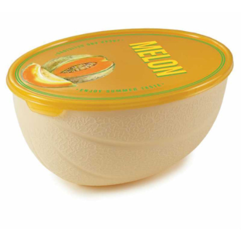 A 2 literes sárgadinnye formájú tárolóban praktikusan és légmentesen tudjuk tárolni a már megkezdett sárgadinnyét a hűtőben.