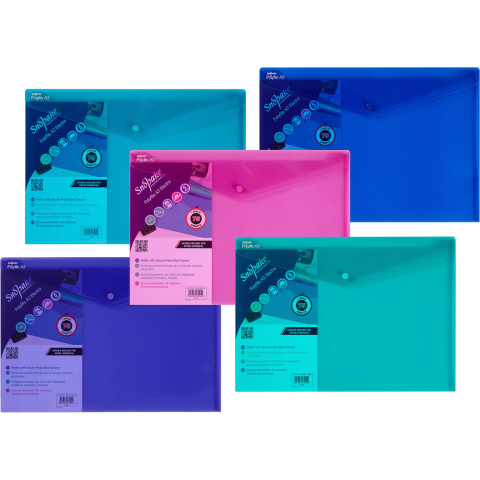 Iratrendező mappa - műanyag, A3, mappa, 75 lap befogadására képes, átlátszó elülső rész, záródása patent segítségével történik, lila, kék, rózsaszín és zöld kivitel, 5 darab a csomagban SNOPAKE Polyfile nyomtatással A3, electra - 5 darabos csomagolásban irattartó mappa - legfontosabb előnyök Rendet teremthetsz dokumentumaid között felírótábla segítségével a népszerű Snopake gyártótó