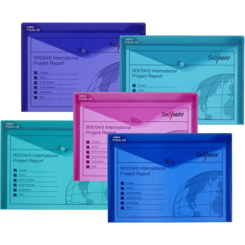 Iratrendező mappa A4 - műanyag, mappa, szárnyak belül, 225 lap befogadására képes, átlátszó elülső rész, záródása patent segítségével történik, lila, kék, rózsaszín és zöld kivitel, méretei 23,8 × 33,5 cm (ma × szé), 5 darab a csomagban SNOPAKE Polyfile patenttal, A4, electra - 5 darabos kiszerelés irattartó mappa - legfontosabb jellemzők A dokumentumok megfelelő rendszerezéséhez próbáld ki a felírótáblát az ismert Snopake gyártótól