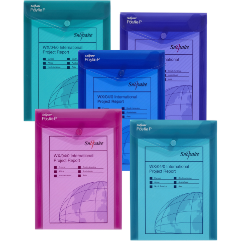 Iratrendező mappa - műanyag, A5, mappa, 1 rekesz, 75 lap befogadására képes, záródása patent segítségével történik, lila, kék, rózsaszín és zöld kivitel, 5 darab a csomagban SNOPAKE Polyfile patenttal P, A5, electra - 5 darabos csomagolásban irattartó mappa - fontosabb előnyök Minden dokumentumodat könnyedén hozzáférhetővé és jól átláthatóvá teheted a felírótáblák segíts