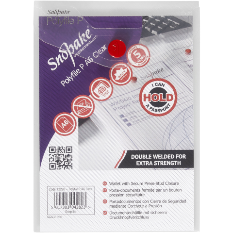 Iratrendező mappa - műanyag, A6, mappa, 1 rekesz, 35 lap befogadására képes, záródása patent segítségével történik, átlátszó kivitel SNOPAKE Polyfile patenttal P A6, átlátszó irattartó mappa - leglényegesebb tulajdonságok A dokumentumok megfelelő rendszerezéséhez próbáld ki a felírótáblát a népszerű Snopake gyártótól Megfelel a kö