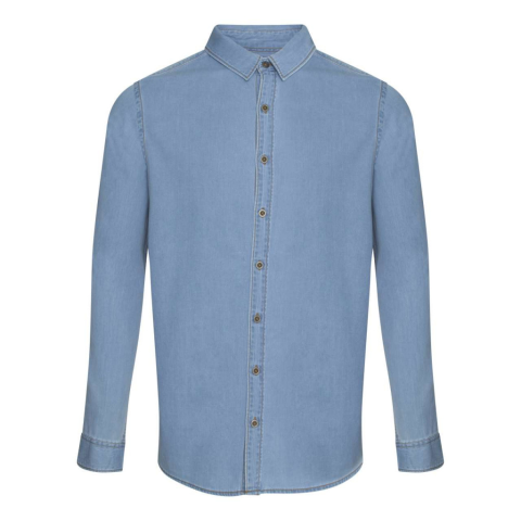 JACK DENIM SHIRT 100% pamutLaza szabásZsebek nélkül, a legnagyobb díszítési felület érdekébenKeskeny gallérHátsó pántSzatén szövésElöl középen gombolópánttal záródikFordított szegély egyedi dupla tűzésű kivitellelA karkivágásnál, a galléron és az elüls