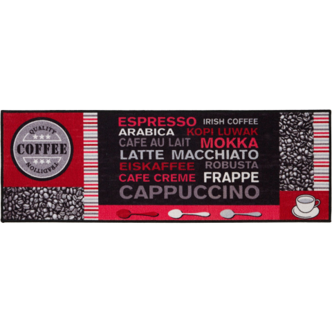 Mintás szőnyeg, amely kifejezetten konyhai használatra lett készítve. Tökéletes választás konyhákba, étkezőkbe, pult elé. Kellemes érzés rajta állni. Pamut hátoldalú.