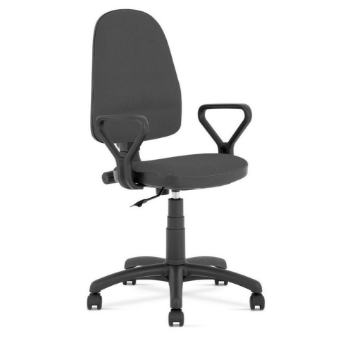 Bravo-Profil TS2 Forgószék karfával. Szín: sötétszürke GTP4 PST01-CPT C SHH Nem gyulladó szövet kárpitozású háttámla és ülőlap. Fix zárt kialakítású műanyag karfa. Permanent contact mechanika. Gázliftes fokozatmentes ülésmagasság. Háttámla magasságállí