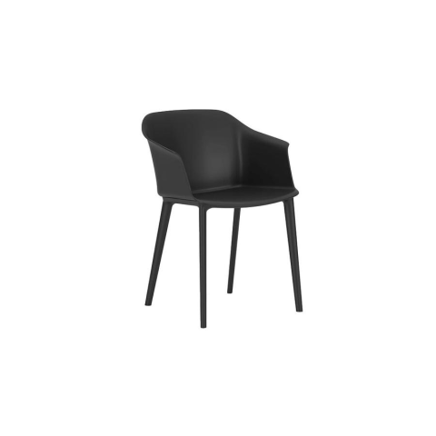 Fekete színű polipropilén ülőlap és háttámla integrált kartámasszal. Fekete polipropilén váz. Kültéri használatra is alkalmas. Összeszerelve szállítva.