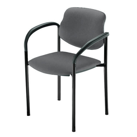 Tárgyalószék nem gyulladó szövet kárpitozású háttámlával és ülőlappal. Nagy teherbírású, rétegeltlemez betétes háttámla és ülőlap. Fekete színű műanyag védőborítás a háttámla hátsó és az ülőlap alsó részén. Festett fekete színű, karfás kialakítású fémváz,